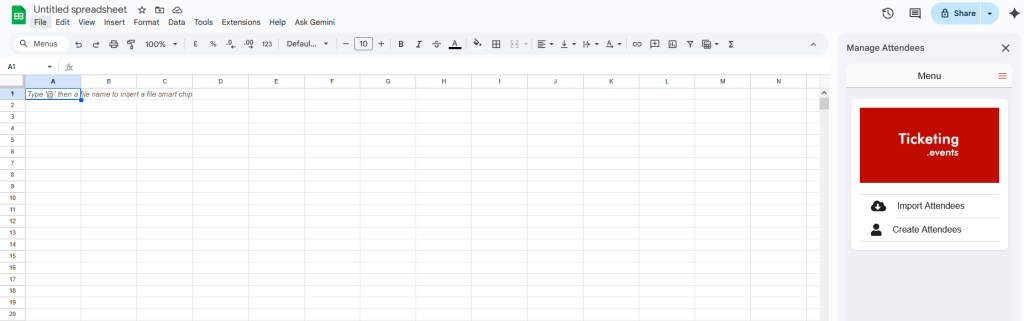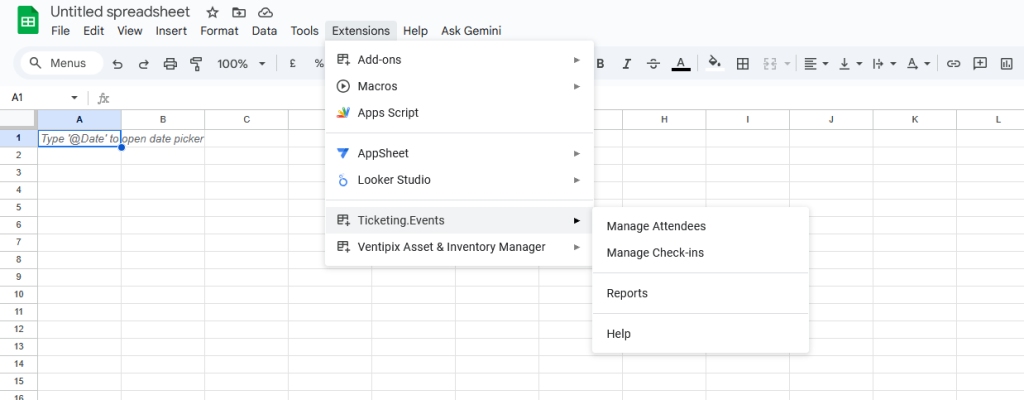 Once installed, the Ticketing.events add-on will be available from the Extensions menu in Google Sheets.